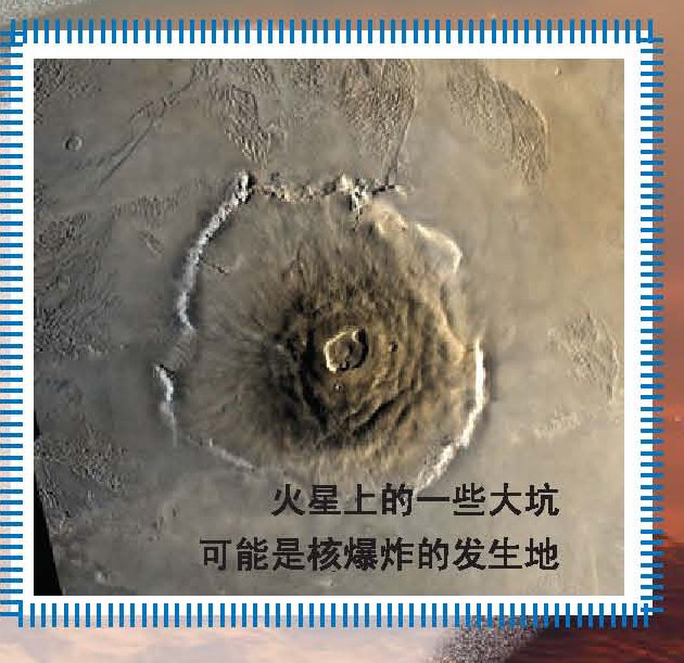 距今1.8亿年前,火星上一声巨响,巨大的蘑菇云冲向天空,前所未有的核爆炸发生了。冲击波、热浪和核辐射席卷整个星球,摧毁了火星表面的所有生物。烟消云散之后,曾经生机勃勃的火星表面变成了一片巨大的荒漠。这些情节是俄罗斯太空轨道技术公司的研究人员约翰·布兰登伯格提出的火星核爆炸假说中的场景。