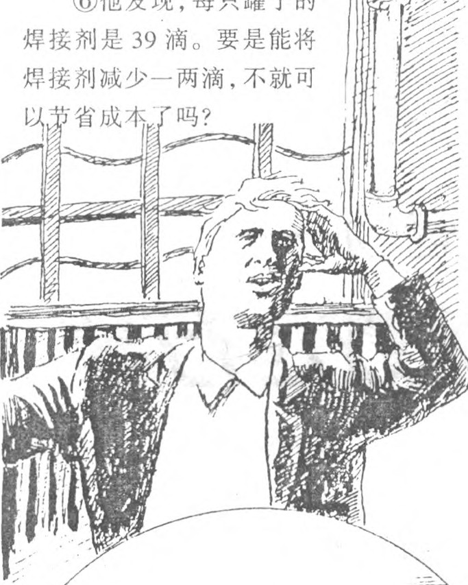 ⑥他发现,每只罐子的 焊接剂是39滴。要是能将焊接剂减少一两滴,不就可以节省成本了吗?