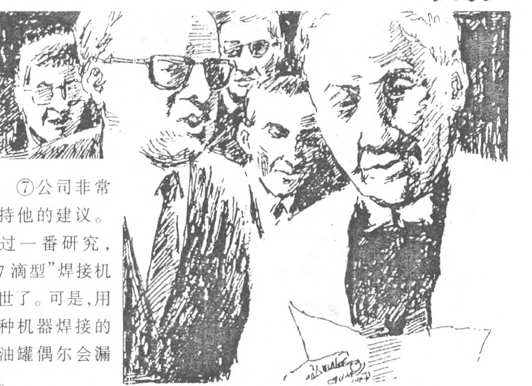 ⑦公司非常支持他的建议。经过一番研究,“37滴型”焊接机问世了。可是,用这种机器焊接的石油罐偶尔会漏油。