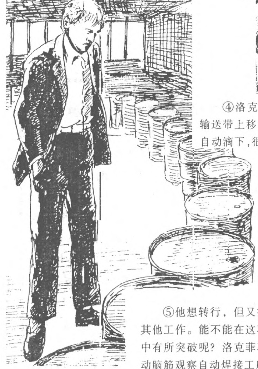 ⑤他想转行,但又找不到其他工作。能不能在这项工作中有所突破呢?洛克菲勒开始动脑筋观察自动焊接工序。