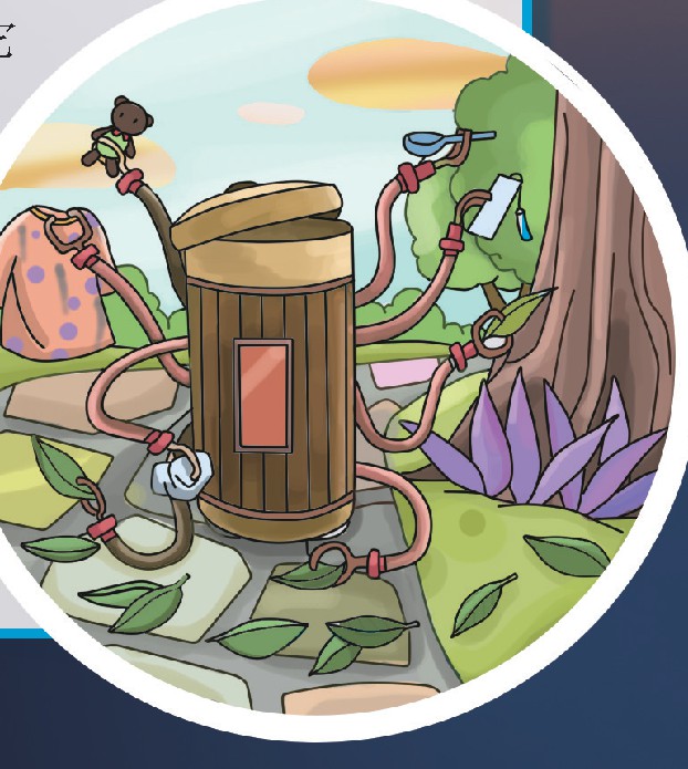 城市街道上总有很多落叶,环卫工人每天都要辛苦地打扫,因此我就想发明一种智能落叶处理器。这种落叶处理器的外形是一个有八只机械手臂的大圆桶,它可以自动探测、捡拾街道上面的落叶。而且在圆桶装满落叶后,你可以在它自带的屏幕上输入书签、餐具、衣服和工艺品等能用植物纤维制造的物品。只要等待5分钟,各种造型的物品就会从它大大的“嘴巴”里吐出来。