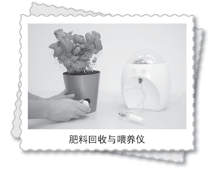 小灵通:“肥料回收与喂养仪从剩饭剩菜中提取有机物质,然后输送给植物的根。”