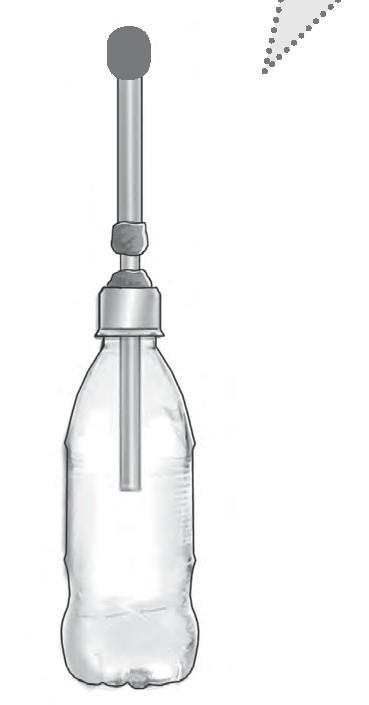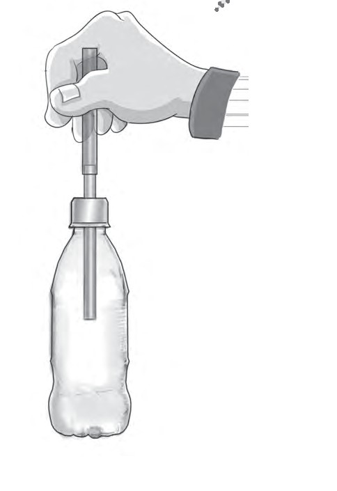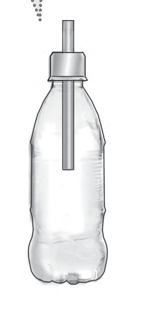 步骤2 将细塑料管插入孔中,留出一部分在瓶盖外,拧紧瓶盖。