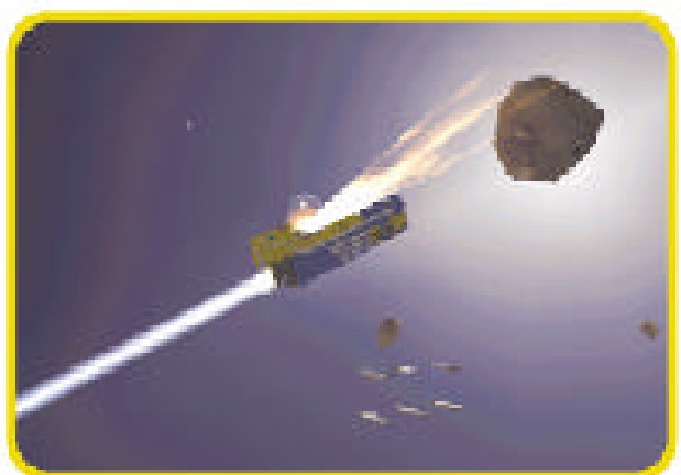 在小行星采到的矿石,运到月球仓库,再运到地球,用飞船或航天飞机当是可行的,但成本太高,因此,有科学家提出了一种新式的“天梯管道运输法”。大家知道有一种同步卫星,它环绕地球时,旋转的角速度与地球自转的速度是一样的,看上去就像悬在空中不动似的。如果从同步卫星上用一根绳索和地球上一点对接,然后用航天飞机运送机械设备和装置,沿绳索装配出一个巨大的管道,管道中装上电梯,让卫星和地面联结起来。来自月球、小天体的矿藏、人员、设备,就可以在管道中来来往往。科学家们认为,这种运输天梯能用月球或卫星上的太阳能电站电力作运转动力,成本很低,运输量大,只要机器不出故障,可以不间断地运来运去。但是,从同步卫星到地面有几万公里的距离,有什么材料能经得住狂风的袭击?月球的自转速度与地球不同,从月球到同步卫星的管道怎样设计,才能同卫星到地球的管道相协调?这也是一大难题呀!因此,运输天梯的设想似乎是不可行的。