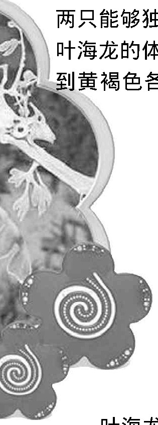 在澳大利亚南部相对寒冷的浅海水域里,生活着一种美丽非凡的鱼类。这种鱼长着“管状”的嘴巴,有须有角,乍看上去既像海藻叶,又像中国神话传说中的龙,故称“叶海龙”或“海藻龙”。它们身上布满了形态美丽的绿叶,仿佛披着绿色的轻纱,游动起来摇曳生姿,令人啧啧称绝,所以人们又称它们为“世界上最优雅的泳客”。