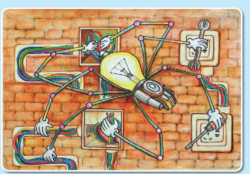我发明的智能蜘蛛线路修复机,它的造型和蜘蛛相仿,能自动探测故障点,进行修复线路的工作。这款线路修复机可以帮助人们解决墙壁内线路损坏的难题。