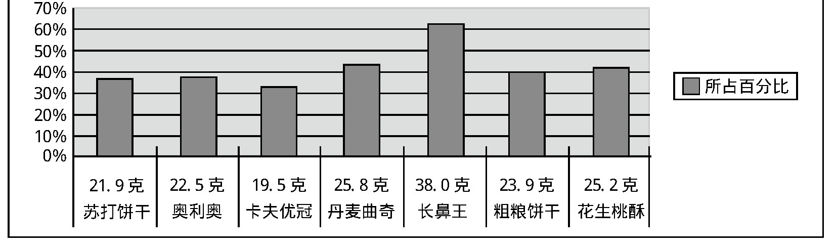 我们制作了“饼干喜爱程度调查问卷”,随机选取了一到六年级每班五名同学填写了问卷。接着又到超市了解了饼干的销量情况。通过对问卷和超市饼干销量的分析,我们选取了几种大家普遍喜欢吃的饼干品牌进行研究。