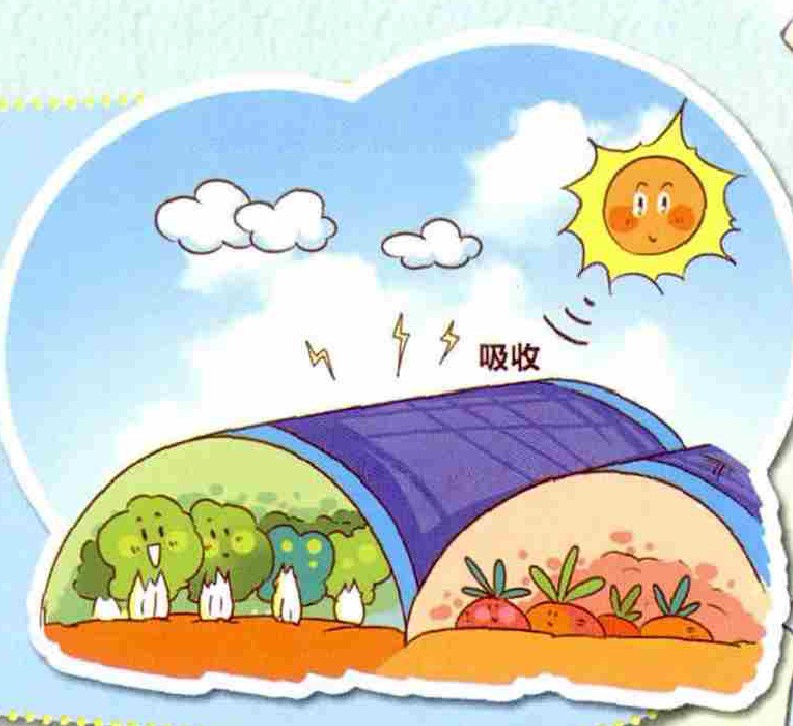 安徽省黄山市黟县石亭小学金文亮现在的蔬菜一般种植在塑料大棚里,夏天都要采用遮阴网。我想发明一种太阳能网,夏天既可以遮阴,又可以把太阳能收集起来,一部分转化为电能,供农户使用;另外一部分则可以自动储存起来,等到冬天阳光没那么充足的时候,储存的电能就可以自动提升大棚内的温度。
