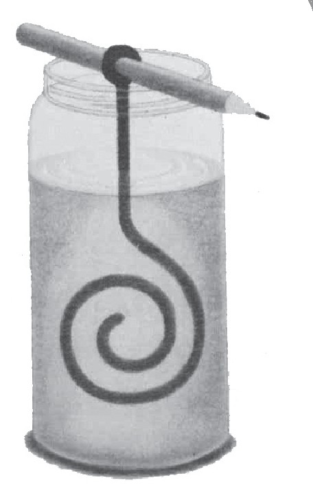 4把烟斗通条的一条弯成一条卷曲的蛇形,另一头绕在铅笔上。