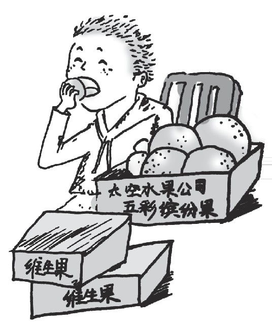 如今,为了方便大家摄取维生素,我们太空水果公司特别研究生产出了“维生果”,顾名思义这是一种包含了人体所需的各种维生素的果子,这种果子的保质期特别长,一般可保质两年。