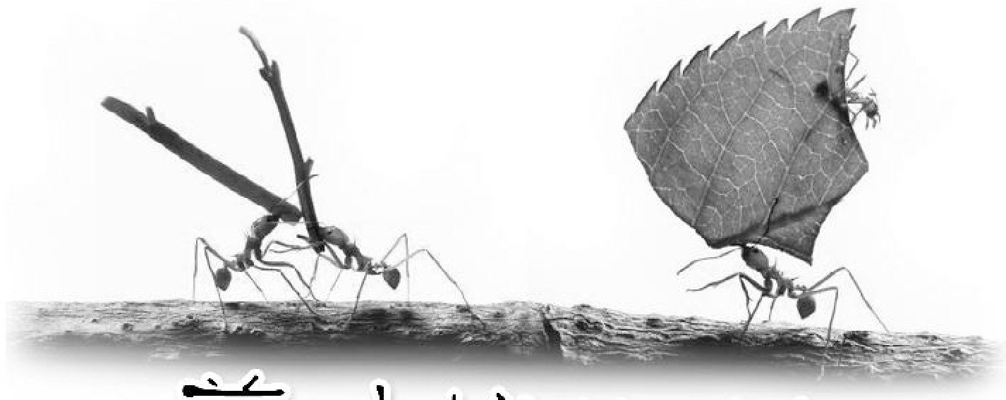剪叶蚁常成群结队地出来活动,寻找剪切对象。队伍中有负责群体保卫的兵蚁,有负责剪叶的中等大小的工蚁,还有担任戒备工作的小工蚁。