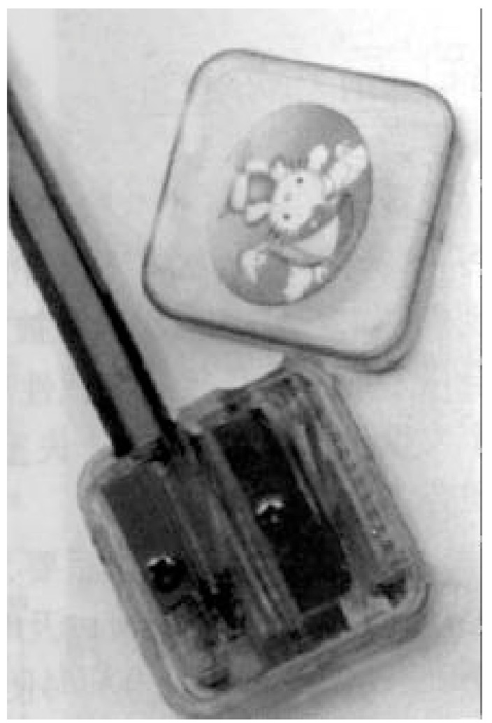 本铅笔刀由壳体、铅芯刀片、削木刀片、挡块、铅芯刀槽和削木刀槽组成(如图)。