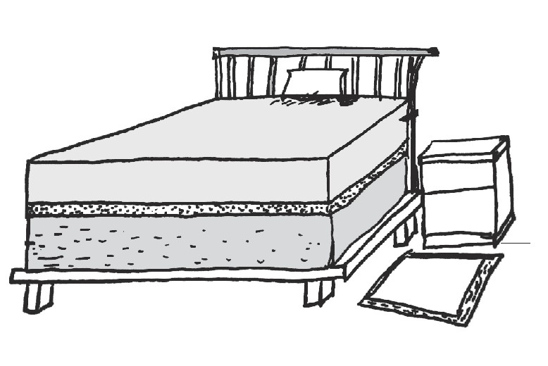 我想发明一种由三层特殊结构组成的高级床:最下面有一台能发出声波消除疲劳的按摩机;第二层是一种冬暖夏凉的海绵布;第三层是被子,被子虽然很厚,但分量较轻,因为它里面是一种液态物体,往上一躺液态物体会自动覆盖你全身。
