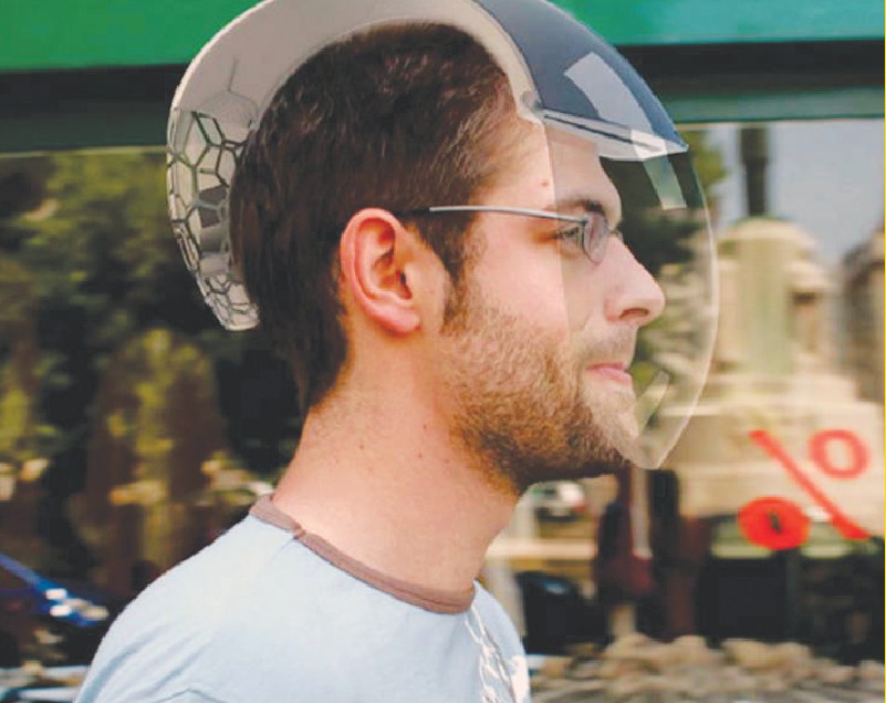 在所有的公共场所中,公路是空气较为污浊的场所之一。尤其是在公路上骑车,或在人行道上步行,我们都会呼吸到大量的废气。而头盔净化器可以帮助我们消除一部分公路污染。这款净化器从头盔后部的进气孔进气,然后通过过滤装置将污染的空气净化后在前方的面罩处排出,这样我们就可以呼吸到较为干净、新鲜的空气了。这款净化器还安装有太阳能电池板,可以为头盔后部的净化装置提供动力。