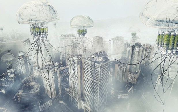 在我们燃烧煤炭、汽油、天然气等燃料时,会向大气中排放污染性较强的氮氧化合物,这是让我们觉得空气有异味的主要原因之一,也是形成酸雨的主要污染物之一。这款飘浮在空中的净化器像是飘浮在城市中的巨型“水母”,其主体是个氢气球,下面吊着空气净化舱,大量的“触须”是为了让净化器在空中保持平衡。“水母”的净化舱中有大量固氮微生物,可以贪婪地“吞食”大气中的氮氧化合物。净化舱中还培育有大量藤本树木,可充分利用固氮微生物产生的氮肥。