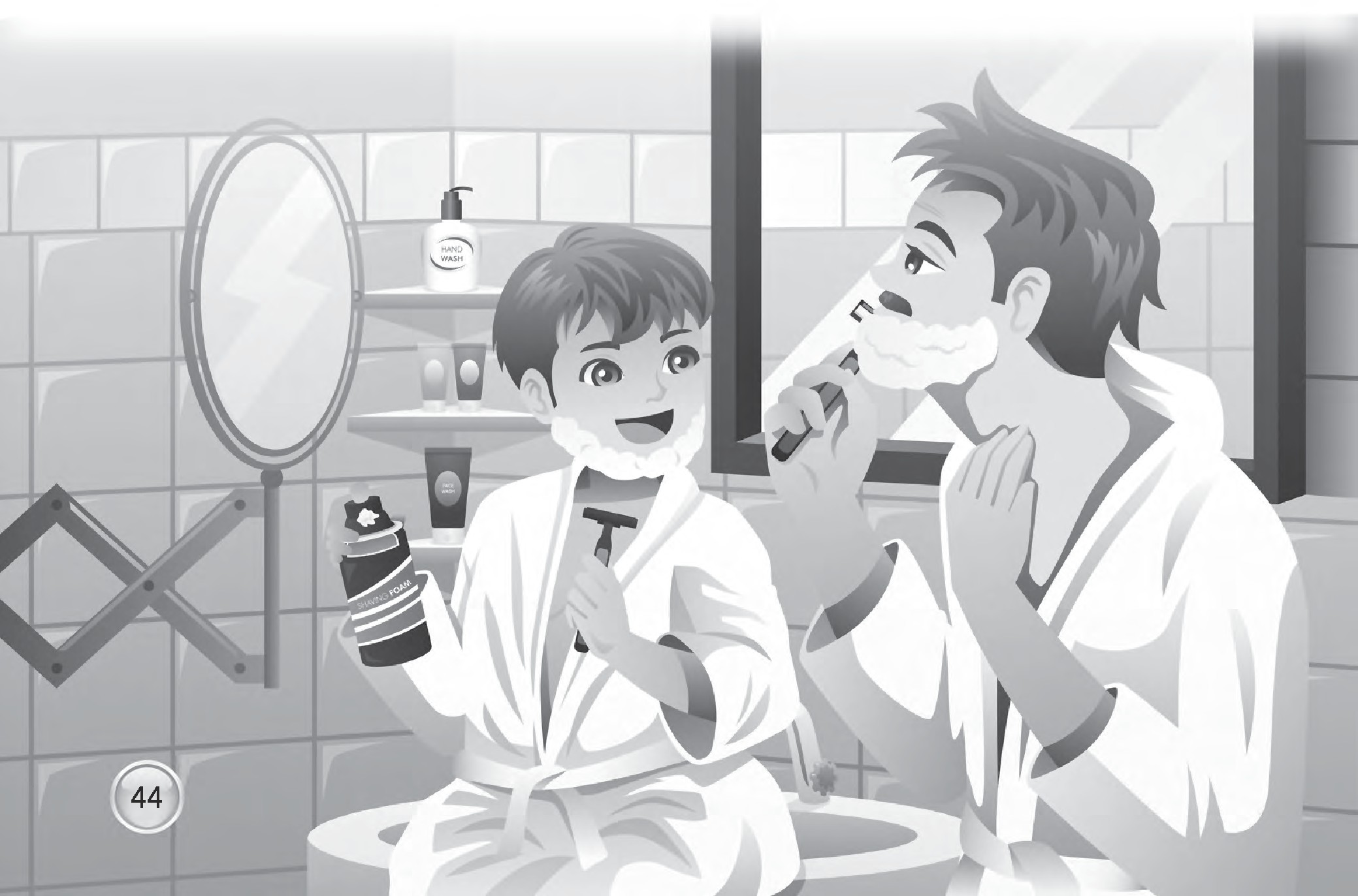 “我爸爸用的都是电动剃须刀,我还从来没有见过这种手动的剃须刀呢!”吴晓宇好奇地看着那“T”字形的刀架。