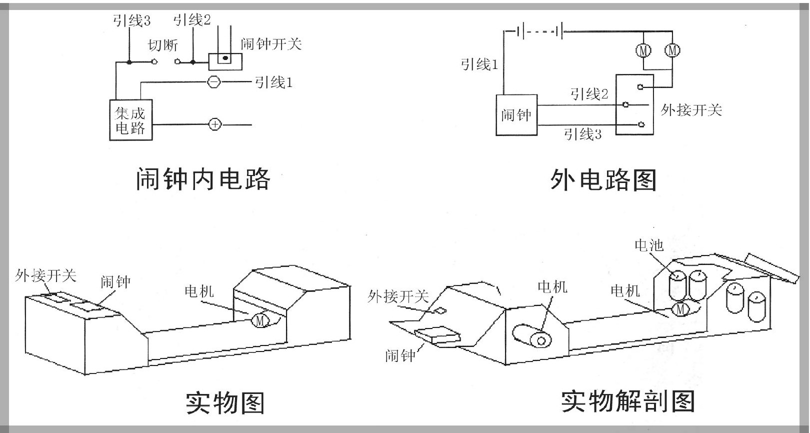 在人们的日常生活中,往往会因为不能及时起床而耽误事情,但有时又因为闹铃的声音太大而影响他人休息。比如说:学生要上课,平时都会起很早,但家长则需要更多的休息。一般的闹铃虽能叫醒人,但影响其他人休息。所以我设计了振动闹铃,刚好可以解决这一难题。