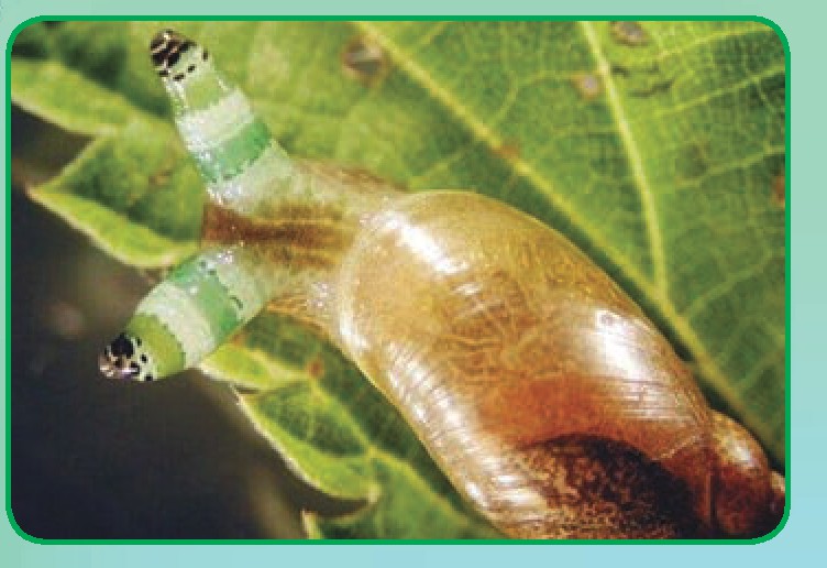 其实,那只鸟儿眼中的“毛毛虫”,实际上是寄生在蜗牛眼柄位置的双盘吸虫,这种虫子在繁殖时节会控制沦为“丧尸”的蜗牛爬到大树顶端,并且不断地抽动身体,力争让自己在鸟儿眼里更像一只鲜嫩可口的肉虫。