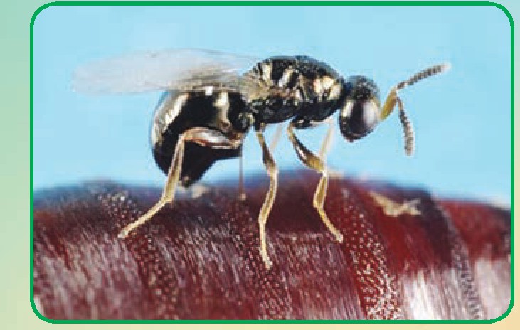 红铃虫是一种主要以棉花为食的害虫。它属于麦蛾科,是蛾子的一种,它由肉虫到蛹再到蛾子的整个过程,都会躲在茧中变态(在有些生物的个体发育中,其形态和构造上经历阶段性剧烈变化)。这个时候,金小蜂就要出场了。它一见到红铃虫的茧,就会先用头上的触角敲打几下,辨别这个茧是否新鲜,里面有没有鲜嫩的虫蛹。如果有,金小蜂就会用腹部比针还尖利许多的产卵器刺破茧壁,猛蜇里面的红铃虫,同时还释放出一种麻醉液来。等里面的虫子被麻醉了,金小蜂就会用嘴吸食猎物的体液为自己补充营养,再将卵产到这比自己大了数倍的红铃虫茧里。