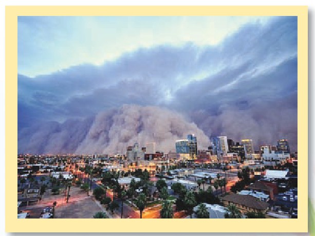 2011年巨大的沙尘暴席卷了美国凤凰城。这场让人望而生畏的沙尘暴被称为哈布”,在图森形成后向凤凰城扑来,在行进的过程中最宽的时候达到了80 467米。抵达凤凰城时,尘埃云的高度已经达到了3 048米。沙尘暴本是一种常见的自然现象,但是规模如此大的沙尘暴却是极不寻常的。