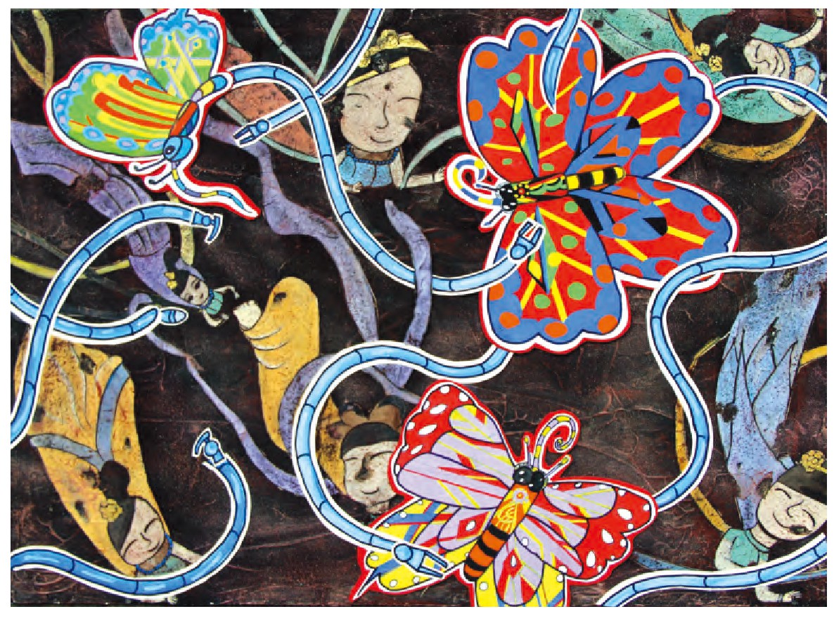 敦煌壁画是我们中国艺术宝库中的瑰宝。可是壁画好多都变得破旧不堪!我想通过仿生技术,制造一批“飞蛾”,让它们来修复宝贵的壁画,让这些壁画重新焕发光彩。瞧,这些“飞蛾”正在不停地修复壁画呢!