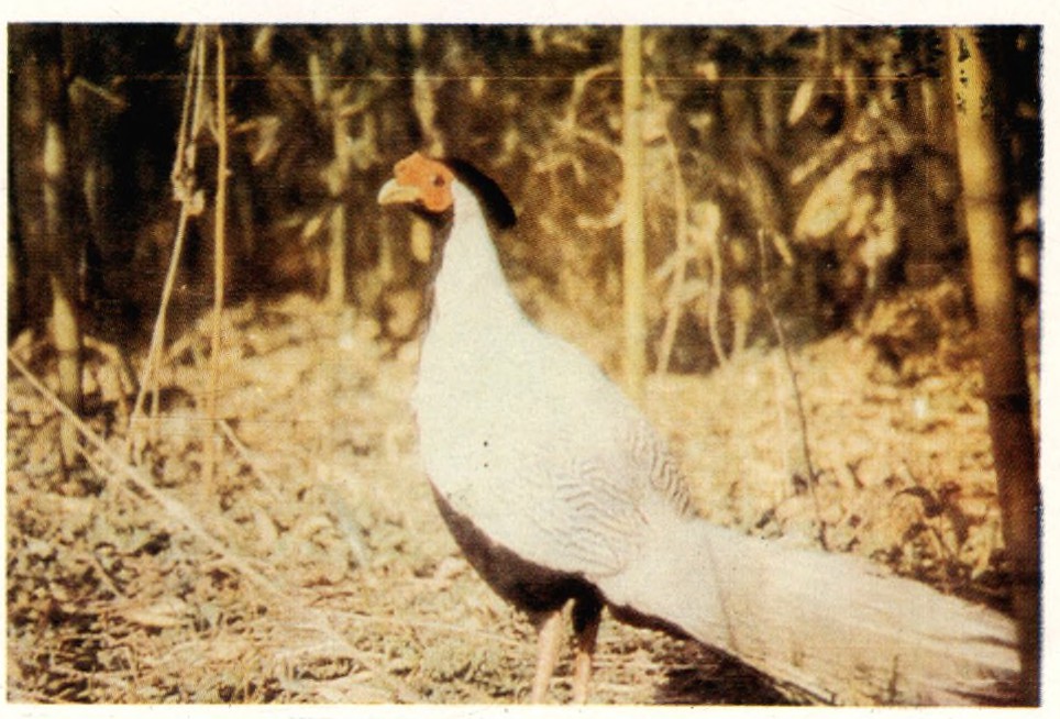 ▲白鹇:又名鹇鸡,体长约600~1100mm,雌雄异色,雄鸟(本图)上体及翼为白色,羽毛上布以“V”形黑纹,头黑色具羽冠,尾羽甚长,白色,外侧尾羽有黑色“V”形黑纹,杂食性,分布于南方各省,栖于各种类型的林地类。