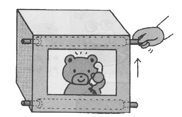 自下而上卷出图画的玩具,像戏场一样。没有布时,也可以用结实的纸做。