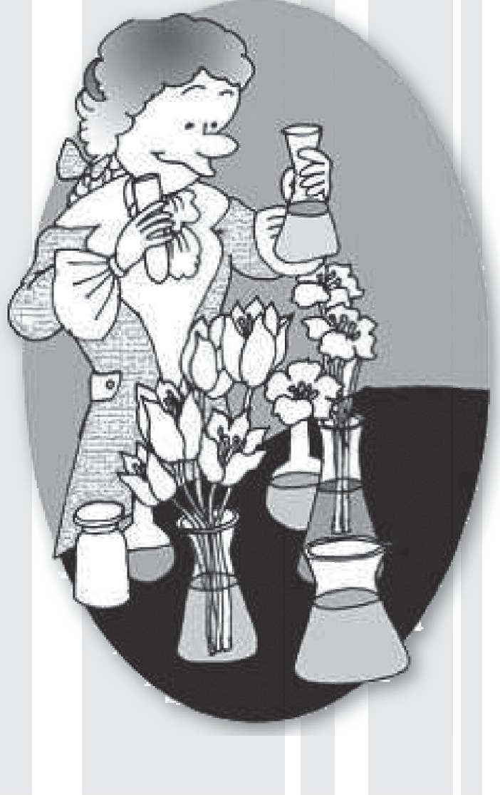 话说波义耳非常喜欢鲜花,这天,他的园丁又专门为他采集了一大簇的紫罗兰放在花瓶中。正准备开始新一轮实验的波义耳,被紫罗兰的芳香深深吸引了,他随手摘取了一朵,一边欣赏着一边来到了实验台前,然后,他放下花束,开始实验了。
