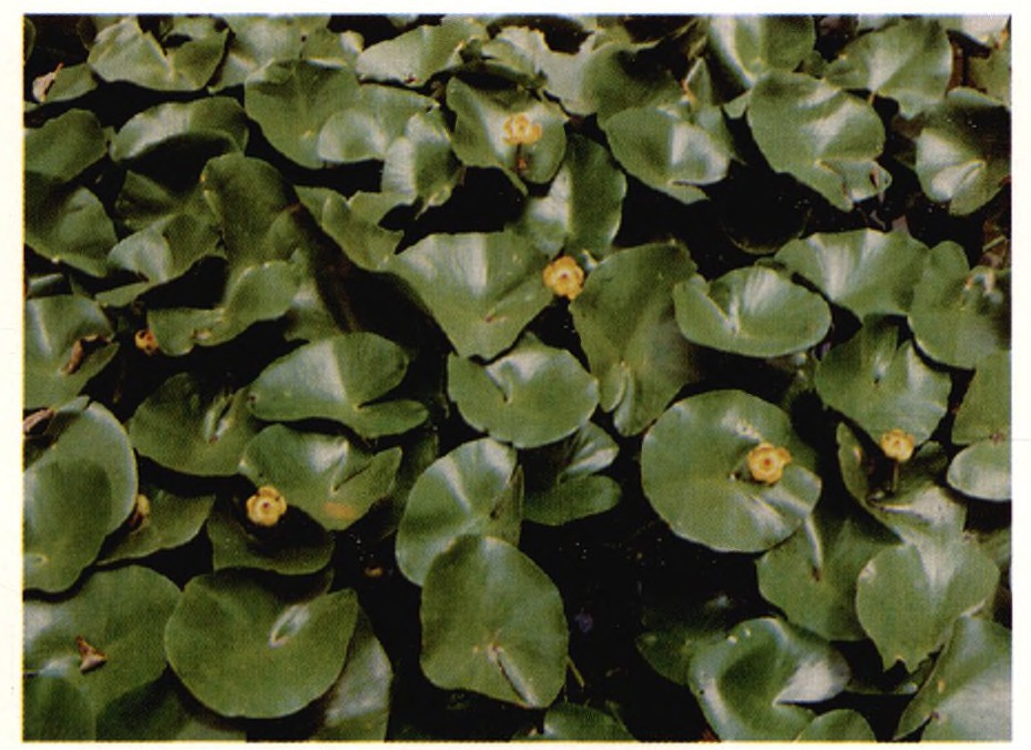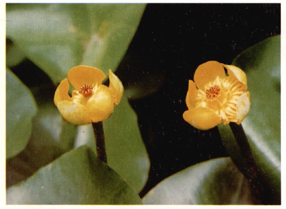 多年生水生草本植物。叶挺立于水面之上,宽卵形或近圆形,表面光泽发亮,花鲜黄色;直径约5~6厘米,花萼5片,较大,花瓣状,花瓣多数,小,宽条形而反卷,雌蕊柱头盘状,顶部10~13裂,浆果。该种叶色油润亮泽,花朵富丽金黄,为少见的水景优美观赏植物。产湖南、江西、贵州等省。