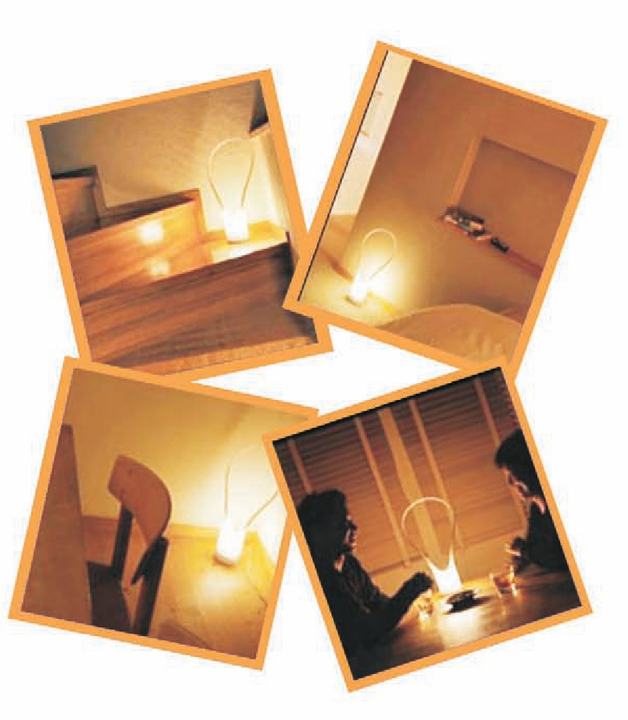 这款家居防震两用灯可以充电,它的设计概念很简单,平时就是一个台灯,比蜡烛安全,而且由于很容易移动,所以同时也可以是睡觉时的夜灯。当外出或出现紧急状况时,它的超大把手让人可以直接提走,小朋友也可以当项圈挂在脖子上,即使碰到地震时的人潮,也不用担心会弄丢。