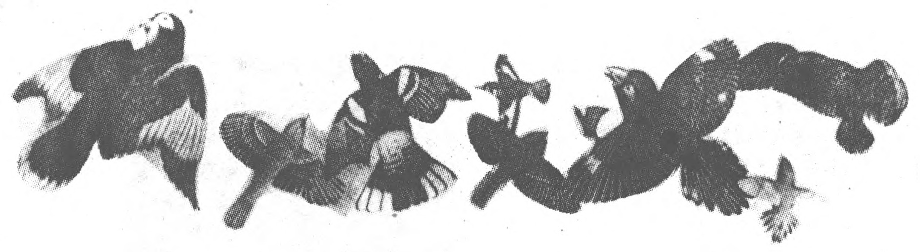 第二组作水平飞行表演,获胜者有红胸秋沙鸭,其最高时速为128.7公里;亚洲白颈刺尾两燕略胜一筹,测得其最快飞行速度为170公里/小时。观众中又发出阵阵喝彩声。这时只见刚才还在运动场上神气活现的信鸽躲到一边去了。