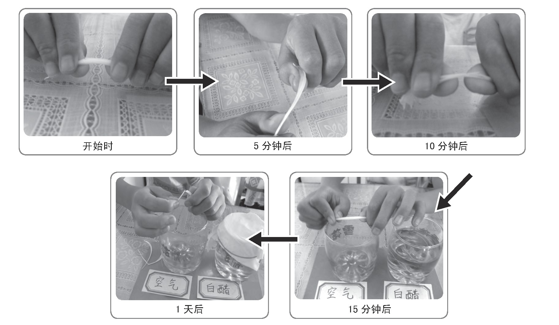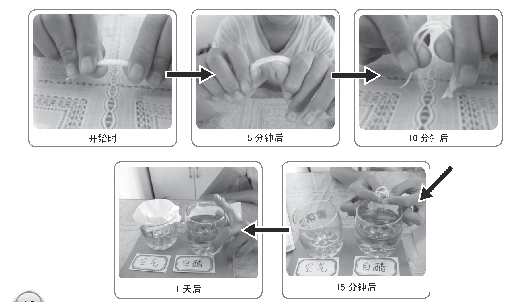 危机解除,我长长地舒了一口气。当我平静下来后,一个个疑问从我脑袋里冒出来:“鱼刺去哪儿了?是被我吞进了肚子里,还是被白醋溶解了?”带着这些疑问,我去请教了科学老师。科学老师鼓励我自己设计实验方案来寻找答案,于是我开始了“当鱼刺遇到白醋会怎样”的探究实验。