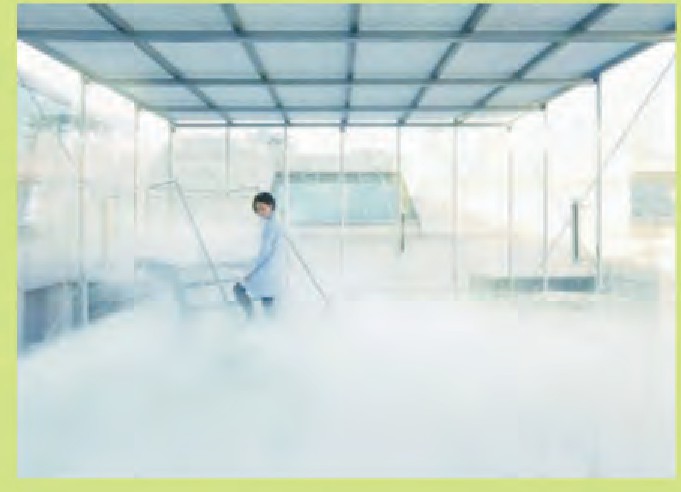 这座位于日本的方盒子建筑,通过气候模拟,在房屋中央创造出了一片云层。当你从一层上到二层时便会穿越其中。原理是,云层下方的空气寒冷而干燥,上方空气炎热而干燥,使得温热潮湿的水汽层悬浮其中。