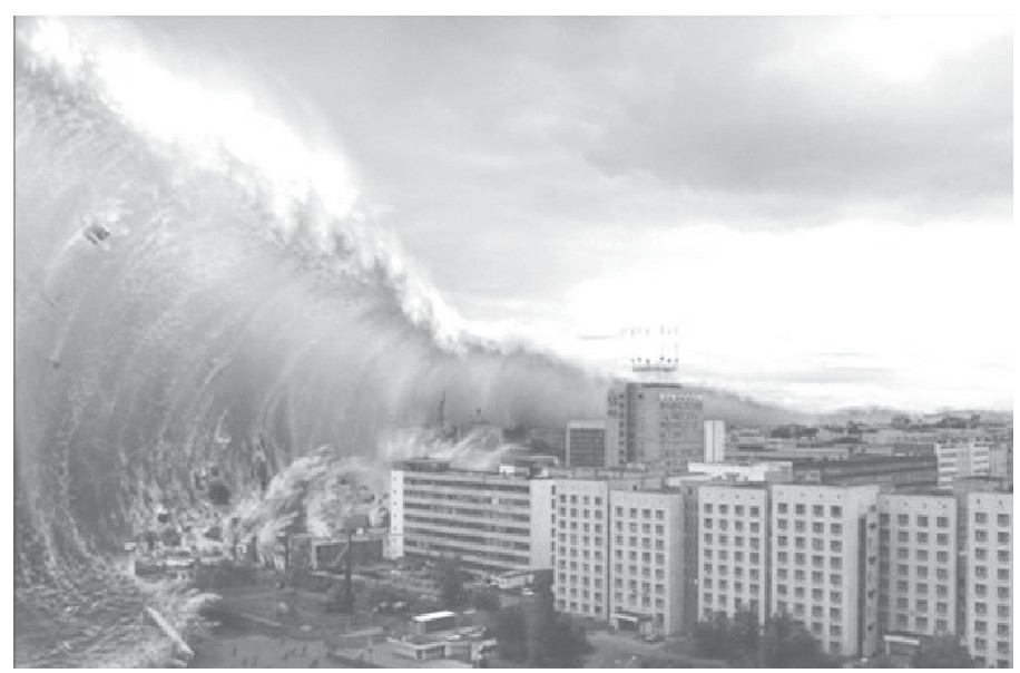 海啸发生时,从岸上向海洋望去,最初会产生错觉,误以为海水急速退去,随后而来却是“水墙”般的巨浪。海啸推进速度惊人,一些时候堪比喷气式飞机。