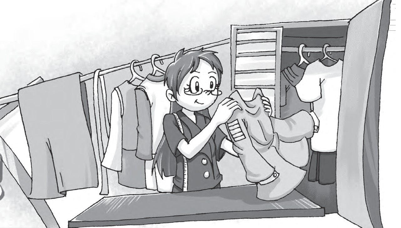 如果你感觉疲劳或身体不适,只要按一下蓝色的自动按摩按钮,衣服就会自动给你按摩,解除你的疲劳和病痛。要是你一不小心,把衣服弄破了,只要你按一下绿色的自动修补按钮,多功能衣服就像有一只隐形的手一样,马上就把衣服补好了,而且不会留下一点痕迹,非常的完整。你们看,是不是很神奇呀?
