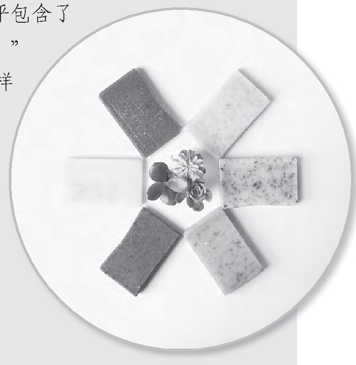 “我们在看像蛋糕一样好看又诱人的肥皂呢!不过话说回来,我觉得肥皂是我们生活中最重要的清洁助手,它好像比洗衣粉、洗手液、沐浴液、洗衣液等出现得更为早一些。它既可清洁身体,也可清洁衣物。它几乎包含了洗衣粉、洗手液、沐浴液和洗衣液等清洁剂的功能啊!”