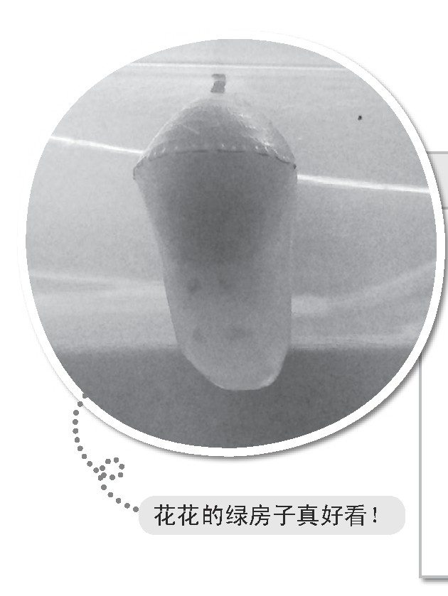 “这么快?!”我一边说,一边跳下床往阳台跑去。只见一个绿莹莹的蛹挂在透明的盒盖上,活像一颗绿宝石吊在半空中,格外引人注目。在这座碧绿的小房子里,小主人花花正在做着甜甜的梦呢。