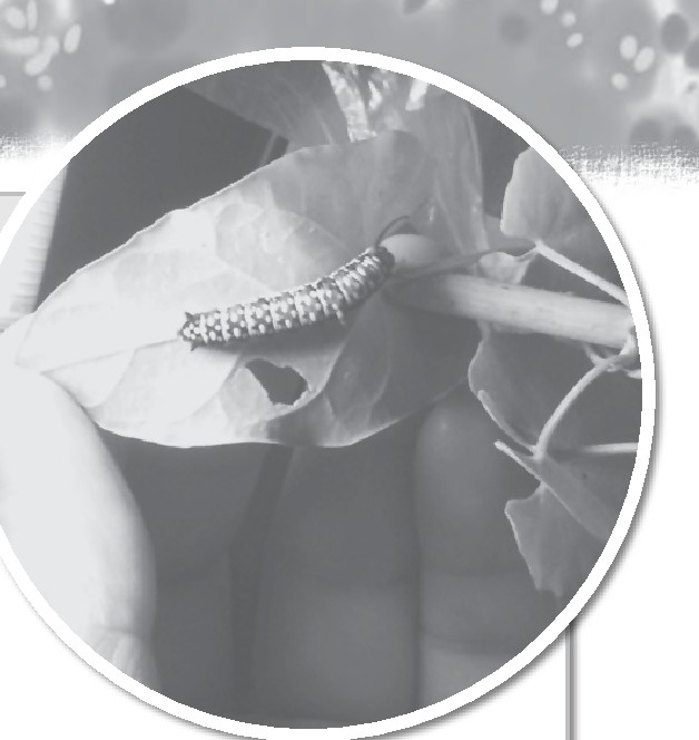 放学回家后,我立刻飞奔到阳台去看望花花,只见它静静地趴在藤蔓上。我定睛一看,花花已经把整盆植物的叶子都给吃光了,它的食量真是让我大开眼界!我转念一想,花花这么拼命地吃东西,是不是要结蛹了呢?如果它结蛹了,那我该怎么做呢?不行,明天我要去找彭老师问清楚,顺便再给花花带回来一些食物。