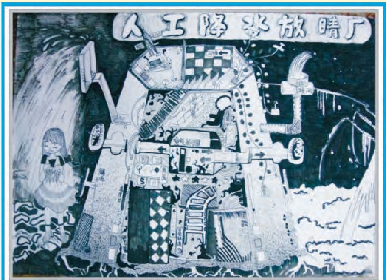 作品简介:现如今,全球环境恶化,造成气候的不良变化,常常冬天冰雪成灾,夏天缺水成患。有了人工降水放晴厂就能调节气候,冰灾来临时,发动放晴管道,放出负离子暖风,瞬间融化冰雪;干旱时,发动降雨管道,旱情将很快得到缓解。