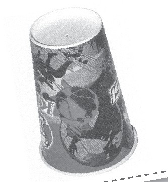 6.将果冻盒固定在饮料杯底部,吸管插入钻好的孔中,果冻盒上的孔与饮料杯上的孔要在同一垂直线上。