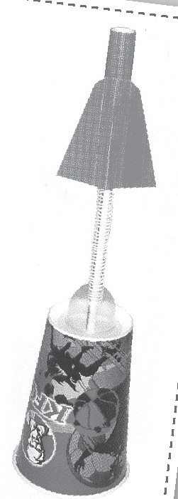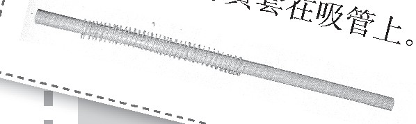 5.将钻了孔的果冻盒套在吸管和弹簧上。