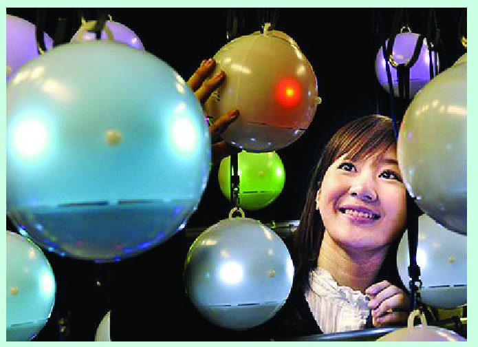 由日本科学家制造的花粉机器人直径30厘米,重约1千克,它闪闪发亮的眼睛可以因所在区域空气中的花粉浓度不同而呈现五种不同的颜色。因为1 6%的日本人长期遭受花粉过敏症的折磨,而这款机器人可以有效地帮助易感者避开花粉稠密区。它悬挂在室外花粉污染区域,可将花粉含量、温度、气压、湿度等相关数据传送到天气预测公司,以利于网上花粉含量警戒图的更新。