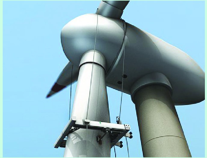 主要由玻璃钢制成的风力涡轮机旋翼桨叶需要承载很强的风、惯性力和侵蚀。迄今为止,人们只能对其进行常规的检查,这是一件很不容易的事。但这个机器人不仅是一个良好的攀登者,而且配备先进的传感设备,可以对旋翼桨叶准确检查。该检测系统由三部分组成:用于指示旋翼桨叶表面温度的红外线发射器、超声波系统和高分辨率的摄像头。