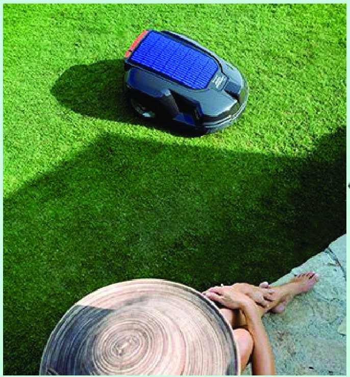 瑞士一家公司设计了一种太阳能混合动力自动割草机,这是世界上第一个自动化割草机,由太阳能供给动力。如果太阳能无法获得时,这种割草机可由电池提供动力,能够持续使用1个小时。将电池充满也只需要45分钟。