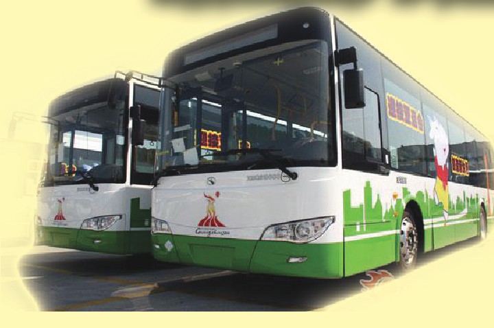 广州亚运会期间,有20多辆纯电动客车在亚运场馆及附近公交线路进行示范运行,100多辆混合动力城市客车在主城区的3~4条线路运行。
