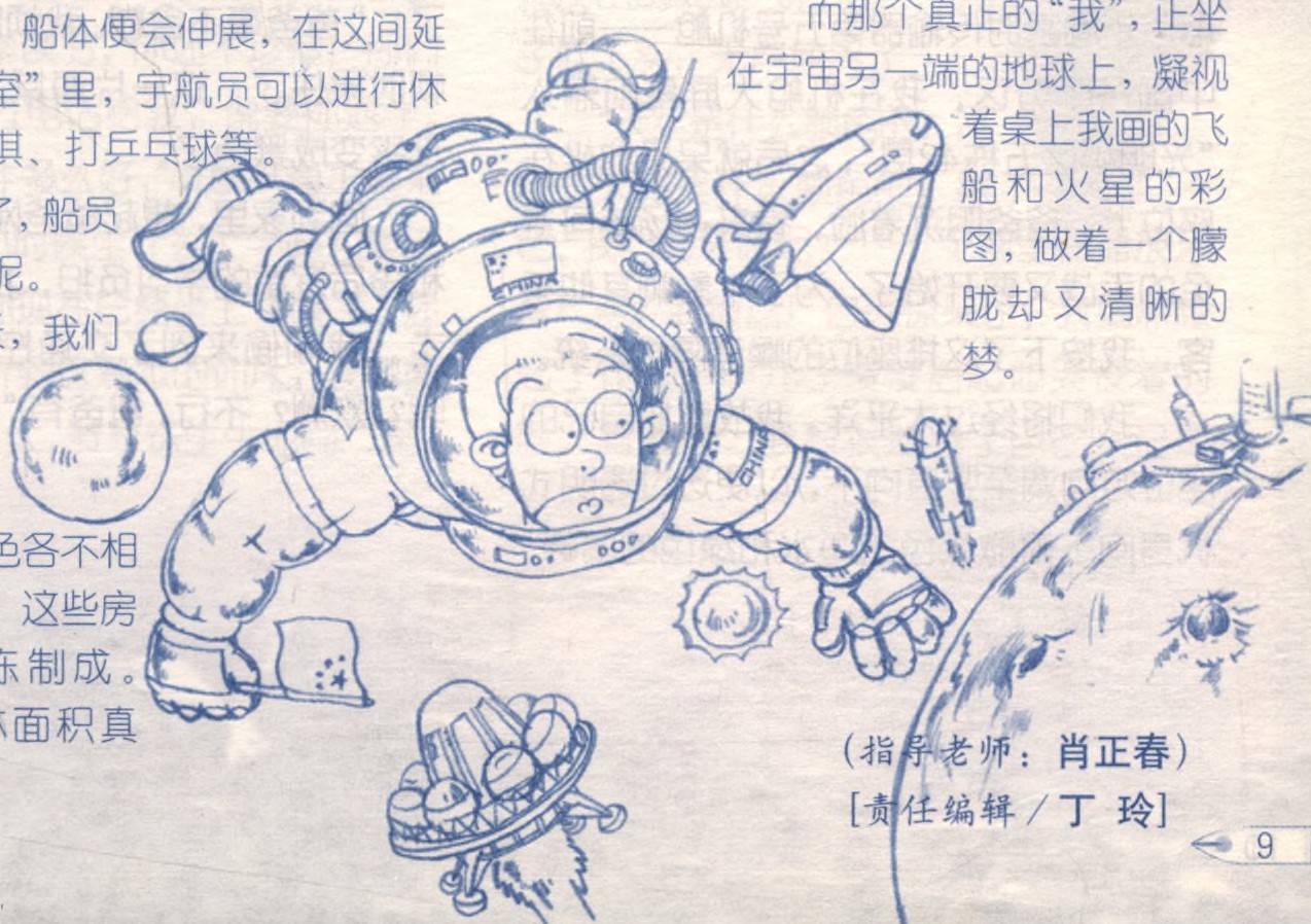 而那个真正的“我”,正坐在宇宙另一端的地球上,凝视着桌上我画的飞船和火星的彩图,做着一个朦胧却又清晰的梦。
