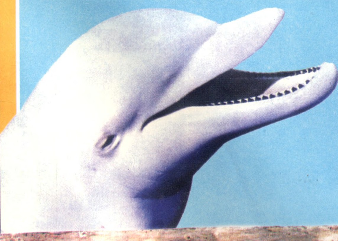 我的体形像鱼,是流线型的。前肢呈鳍状,后肢退化,尾鳍凹陷呈新月形,背鳍则呈三角形。嘴又细又长,长达30 厘米,被称为“喙”或“吻”;眼睛小得像豆子;耳孔小得像针眼,位于眼的后下方,没有耳壳;鼻孔只有一个,位于头顶左侧。我的牙齿可多了,上下颌密密麻麻长满了牙,共有130多颗。我的背面是漂亮的浅蓝灰色,肚皮是白色,鳍一般是青灰色或灰色。我靠尾鳍上下摆动前进,背鳍和胸前鳍则用来控制方向,保持平衡。