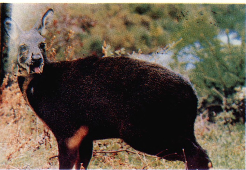 ▲林麝:别名香獐、林獐、麝鹿。被毛粗硬,呈橄榄褐色,并杂有桔红色泽;下颌、喉部、颈以下至前胸间为鲜明的桔黄色或白色;臀部黑色。生活在针叶林或针阔混交林带,性怯,无固定住处,行动轻捷,善爬坡,多以嫩树叶为食。主要分布在我国西南、华中、华南地区。