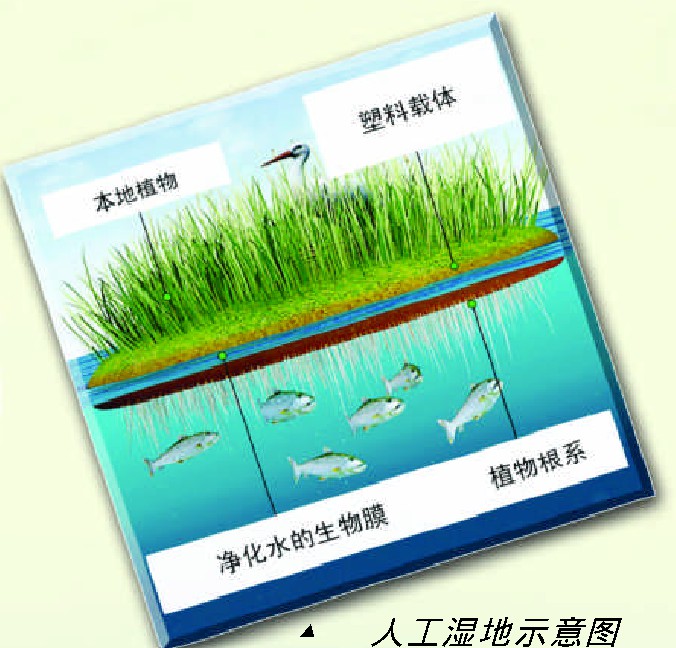 湿地号称“地球的肾脏”,对缓解全球气候变暖有重要作用。但由于人类过度垦殖,全球湿地面积越来越小。美国蒙大拿州的布鲁斯·卡尼亚发明了一种岛屿状人造湿地,他利用回收的废旧塑料制成篮球场大小的人工小岛,岛上种上植被,然后将这些人工岛放在遭到破坏的湿地水域。他为人工岛选择了一些植物,能够吸引比如青蛙、水鸟、海狸等湿地动物。塑料人工岛的内部空隙很大,因此这些植被的根系能够穿过人工岛,成为一个网络,微生物也能附在塑料以及根系上。这样一个人工制造的小生态系统还可以起到净化水质的作用。卡尼亚将他发明的人工岛称作“生物天堂”,每平方千米的人工岛将耗资3亿美元。