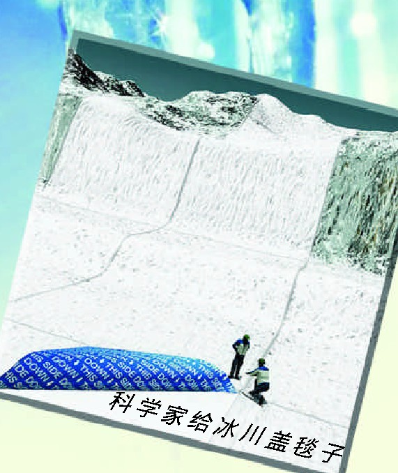 冰川是地球上最大的淡水资源宝库,但是随着全球变暖,冰川面临消融的危险。瑞士弗利兹·兰多特公司生产了一种号称“冰雪保护者”的双层轻质合成纺织品,“冰雪保护者”的上层是一层聚酯材料,可以反射阳光中的紫外线;下层则是聚丙烯材料,具有很好的隔热性能。把这种材料覆盖在高山的冰雪上,即使夏天的阳光也无法使冰雪融化。在最近两年间,“冰雪保护者”覆盖区域的冰雪比周边地区少融化80%。目前,十多家瑞士滑雪场都把弗利兹·兰多特公司当成了救星。但是由于每平方千米冰川需要450万美元的覆盖材料,也只有像瑞士滑雪场这样财力雄厚的地方才用得起“冰川毯子”。非洲乞力马扎罗山的冰川也在日渐融化,但没人愿意为它付出大笔资金。